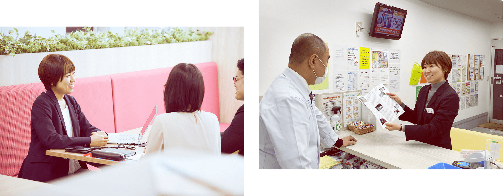 次に営業部への配属となり、全国の調剤薬局に向けた活動をしました。具体的には、新規の薬局様に対しての商談や、販売促進に向けて企画の提案、各地の展示会へ出展などです。薬剤師の先生方とお話しする機会が多く、勉強会では薬学的な質問を受けることもあり、大学で学んだ知識が活かされる場面も多くありました。試行錯誤しながらも、提案によりお客様の販売が伸び喜んでいただけた時、とてもやりがいを感じたのを覚えています。